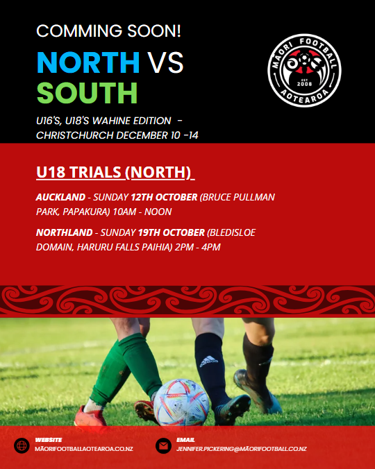 UPDATED – Excitement Builds for North vs South TrialsPublished 3rd October 2025Māori Football Aotearoa’s next major activity is the North vs South trials for U-18 and U-16 (girls only) players. Players…Read more